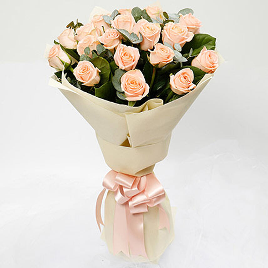 20 Peach Roses Bouquet