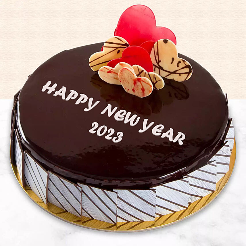Happy New Year Chocolate Fudge Heart Cake
