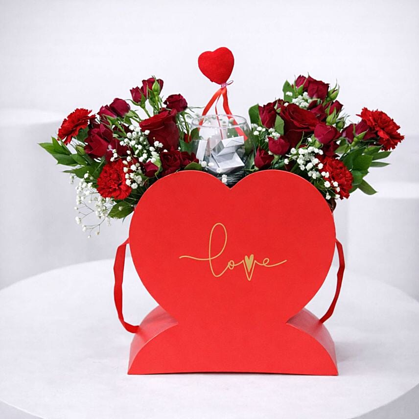 Express your deepest emotions with the Heartfelt Love Red Roses Floral Arrangement, beautifully designed in a charming heart-shaped box. This romantic arrangement features fresh red roses paired with delicate white fillers and lush green foliage, creating a timeless symbol of love. Accented with a plush heart pick and presented in an elegant red keepsake box, it makes a perfect gift for anniversaries, Valentine’s Day, proposals, or heartfelt surprises.