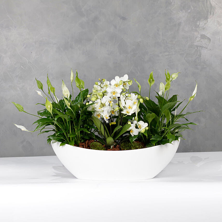 • Filled with 1o stemps of Multi flora orchids and Peace Lily plants