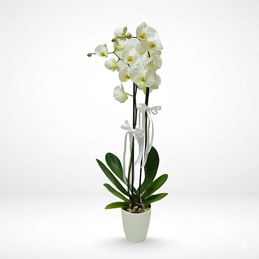 Order now and get your Birthday Gifts, Balloons, Chocolate, Cake and Orchids delivered to your beloved one! Same day delivery in Beirut and all over Lebanon! Our Double-stemmed pure White Phalaenopsis orchid will captivate all who see it. H: 60 cm Care Tips: