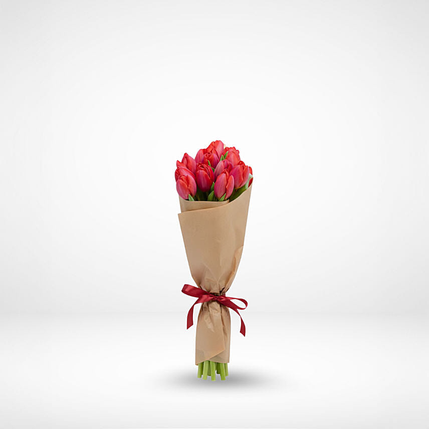 • Beautifully Arranged A Dozen of Red Tulips Bouquet