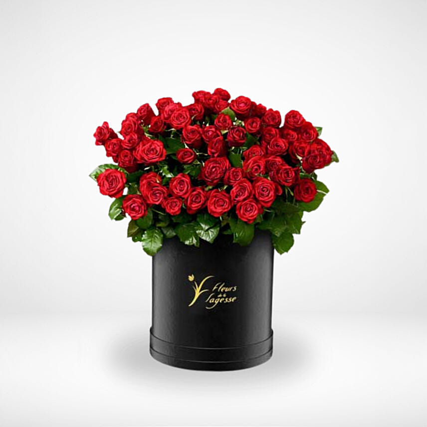 • Beautifully Arranged Box of filled with 40 red baby roses