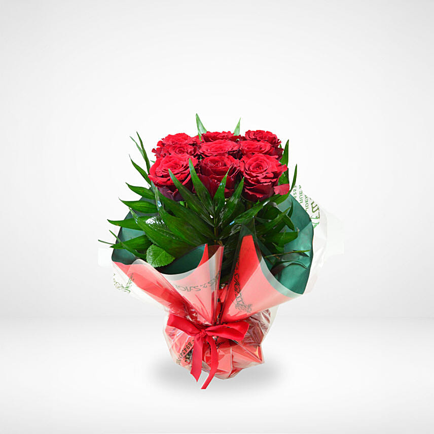 • An Arrangement of 9 Hot Red Roses