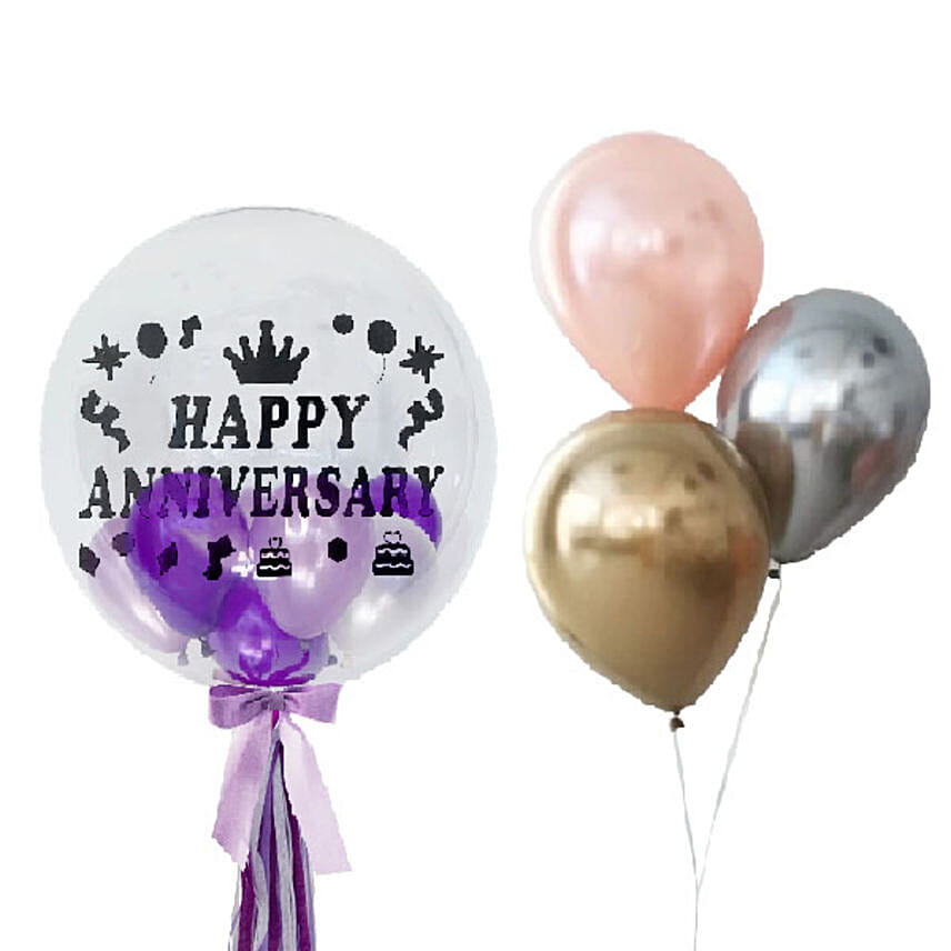 • Convey your "Happy Anniversary" greeting best wishes in style with our helium filled floating Anniversary Bubbly Balloon Bouquet.