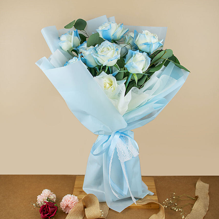 Beautifully Tied Blue Roses Bouquet 18 Stems