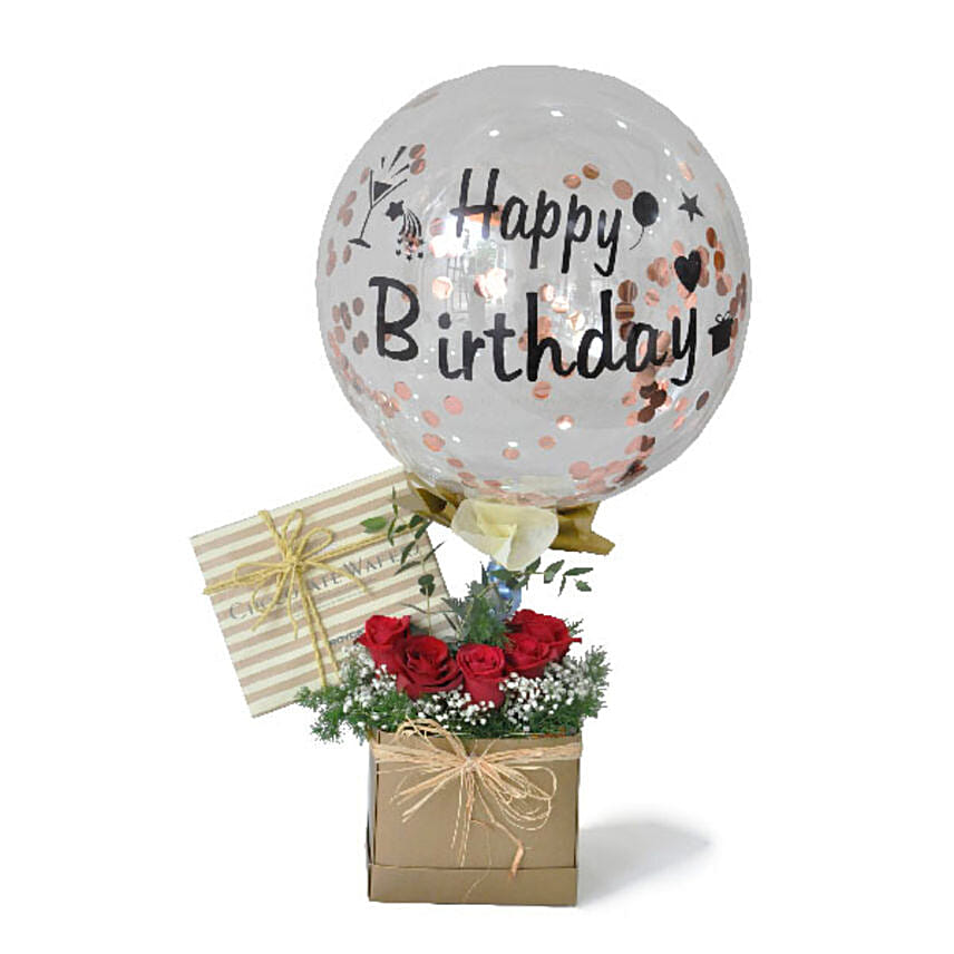 Birthday Balloon And Royce Chocolates Roses Box