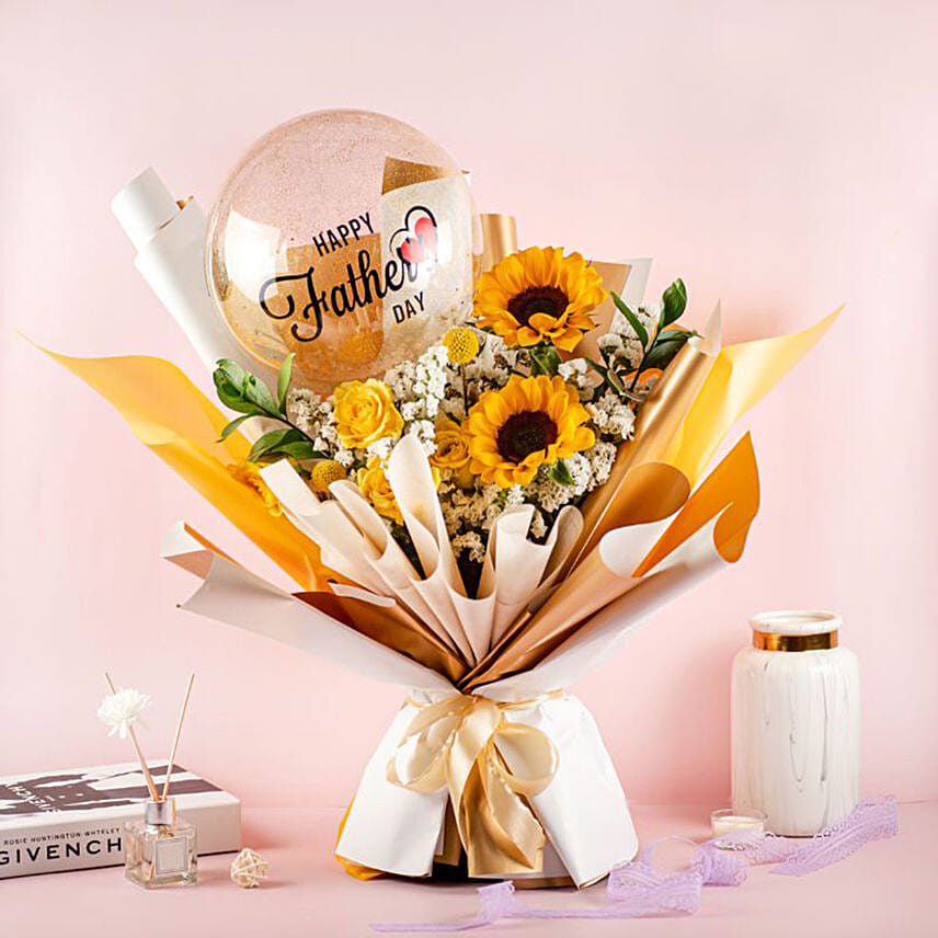 Happy Fathers Day Balloon And Mixed Flowers Bouquet