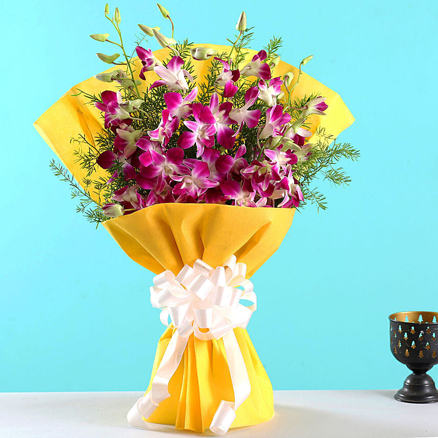Ten Exotic Purple Orchids Bunch