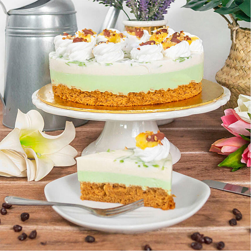 • Burrow into layers of cookie crumbs, coconut and cheese mousse that perfectly describe the wonderful flavours of cendol in a cake. Decorated with red beans & corns