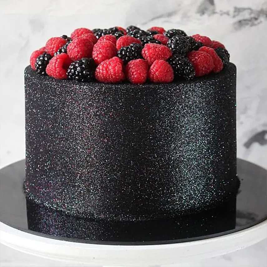 • Filling-Blueberry Cream Cheese Frosting, Cake Covered With Black Buttercream With Sparkle Decoration And