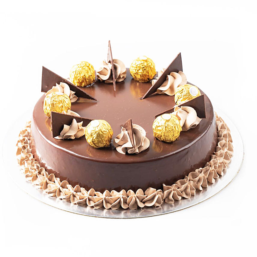 • Ingredients - This cake with chocolate sponge has layered milk chocolate ganache and cream filling. It’s a true delight for chocolate lovers with Ferrero Rocher chocolate garnishing to add to the elegance and texture.