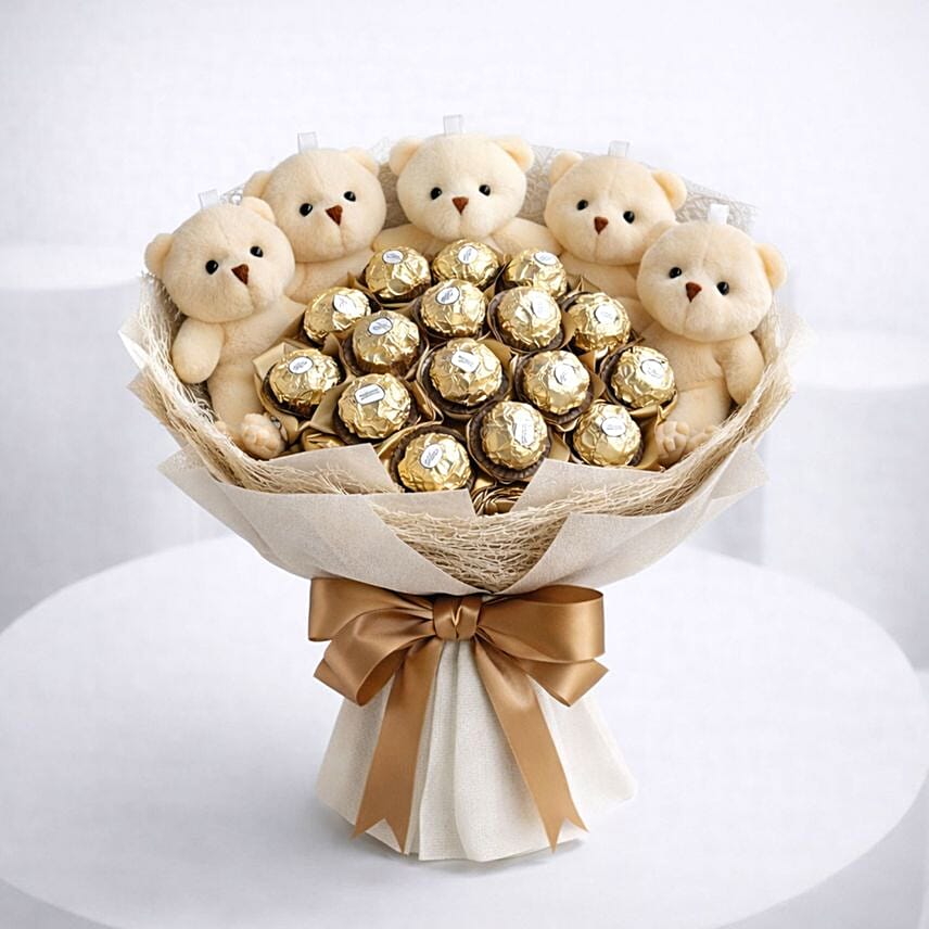 Golden Pearl Teddy Bear Bouquet