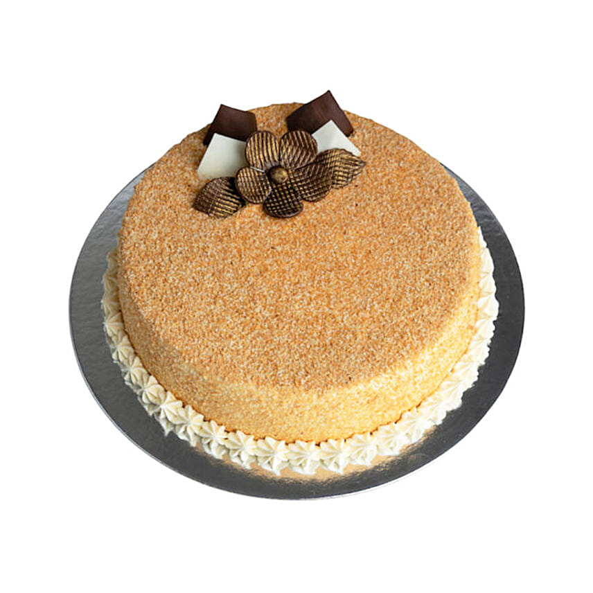 • Ingredients - Satisfy your sweet tooth with our Honey Cake, made with a delicious honey sponge and topped with cream, honey, and crumbs for texture.