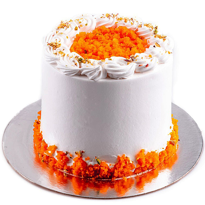 • Eggless Vanilla Sponge Infused With Motichoor Laddu And Sprinkled Pistachio Nuts