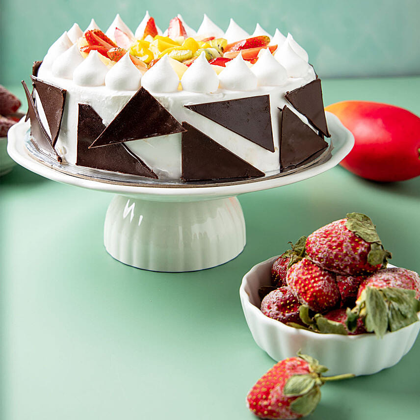 • Ingredients - Our Fresh Fruit Cake has Strawberry, Kiwi, Mango and Pineapple toppings with mouthwatering layers of cream and mesmerizing textured sponge. Needless to say, this is a perfect choice for a festive, fun party cake!