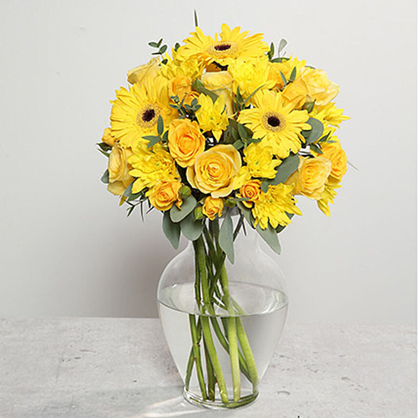 Yellow Gerberas and Roses Arrangement OM