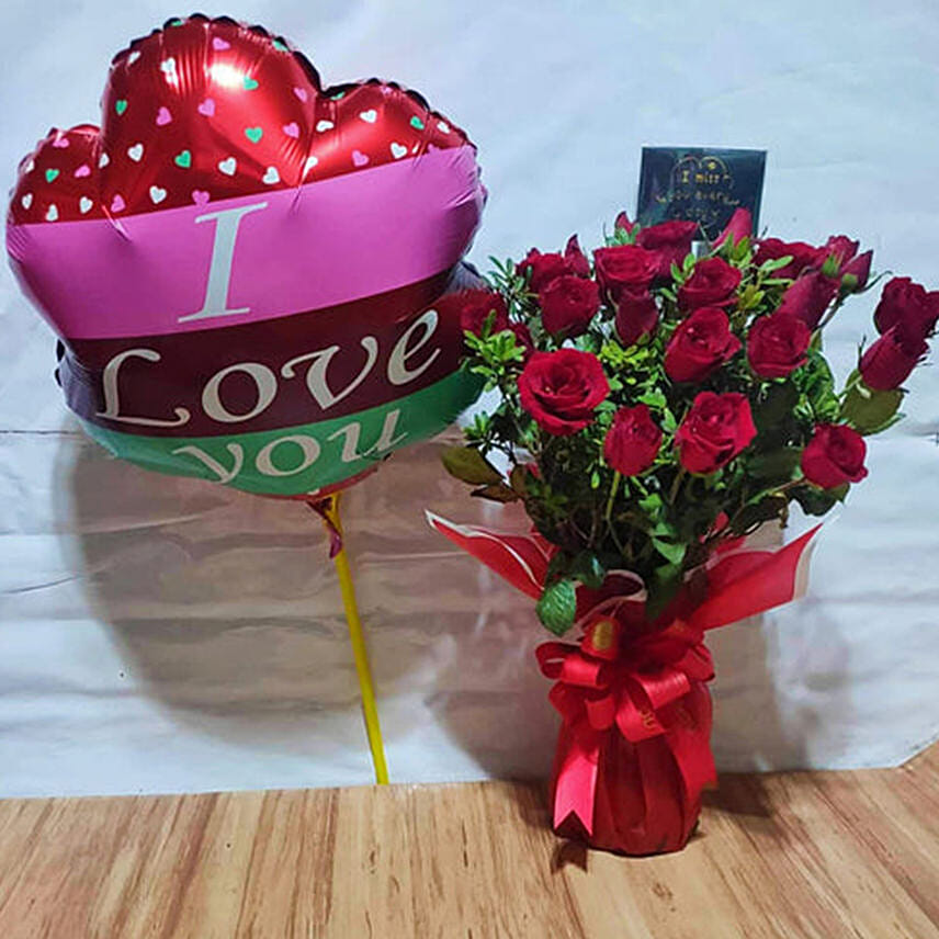 2 dz Roses Vase with Balloon