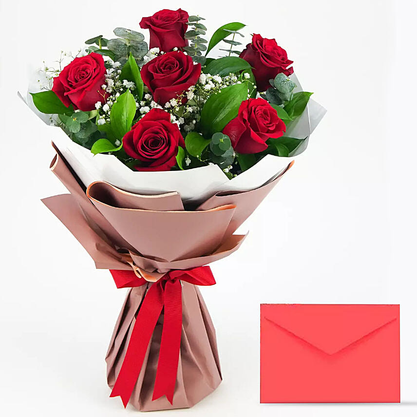 6 Red Roses Bouquet With Greeting Card PH