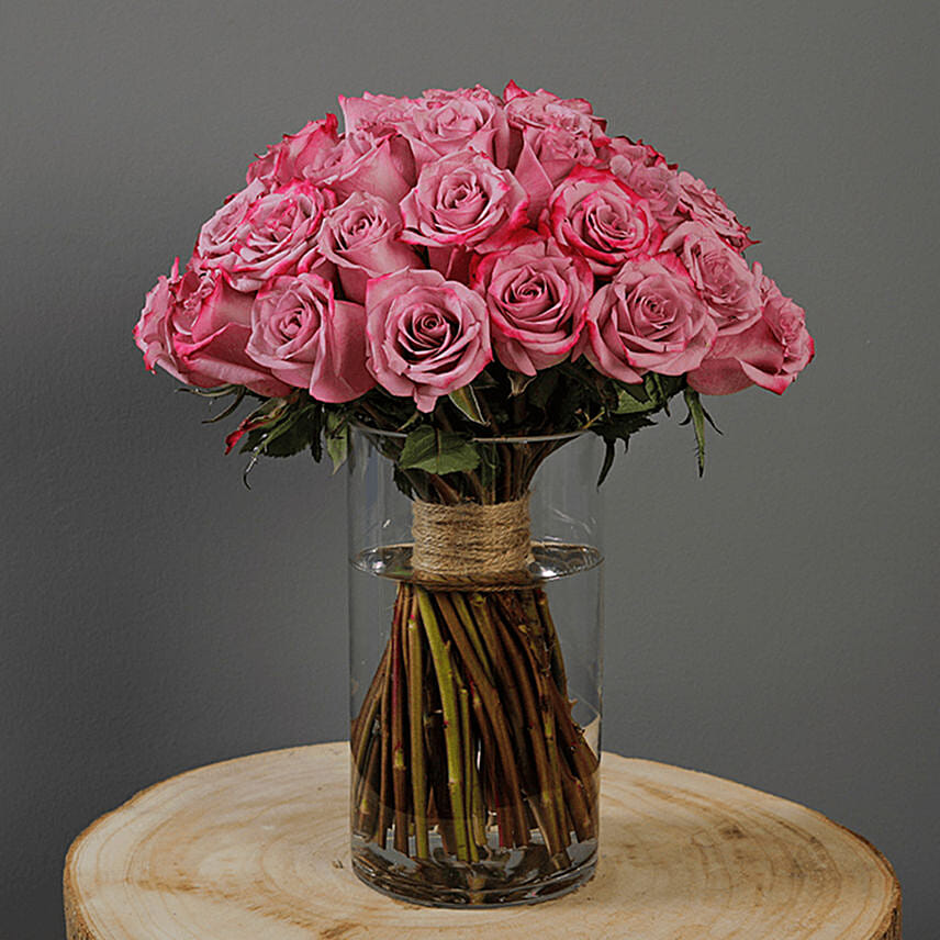 30 Stems Deep Purple Roses Vase