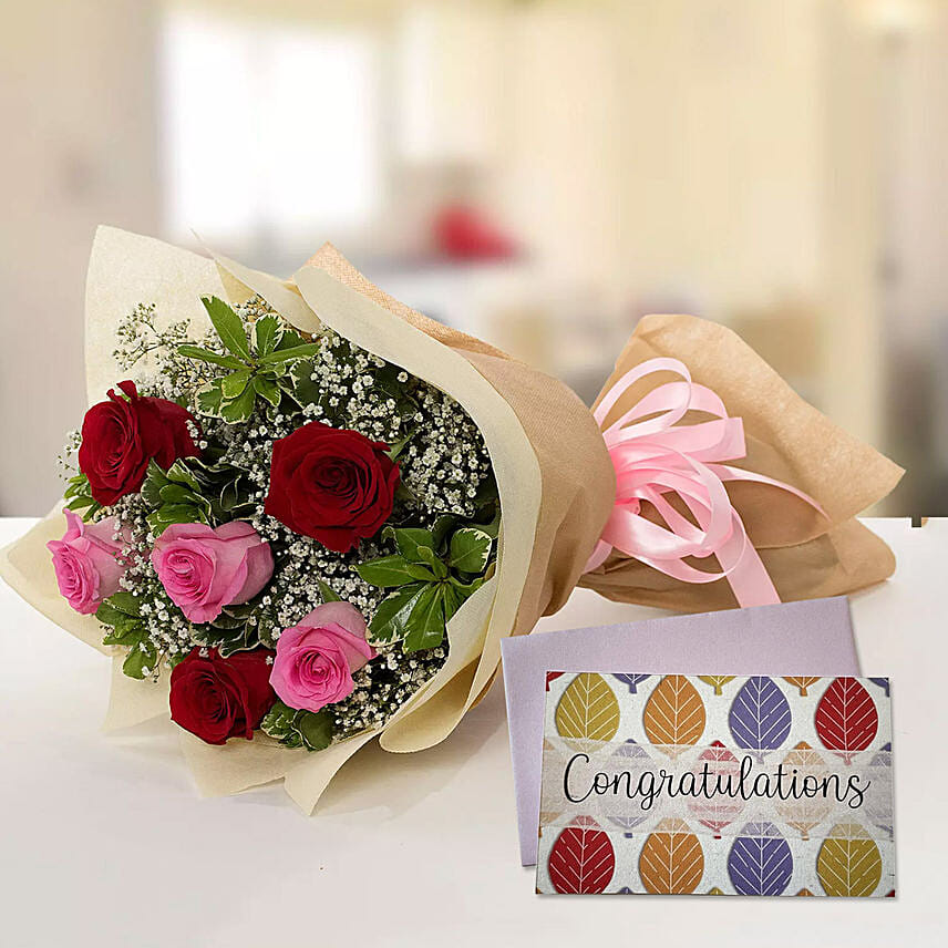 6 Mix Roses Bouquet & Congratulations Card