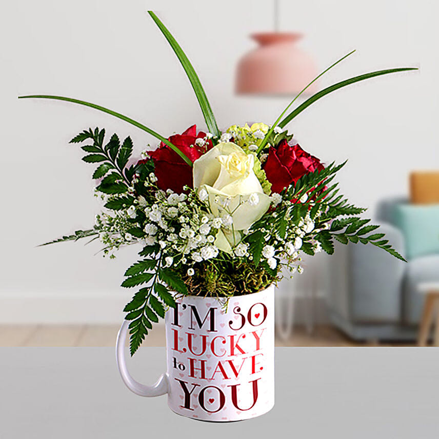 Alluring Mixed Roses In Lucky To Have U Mug