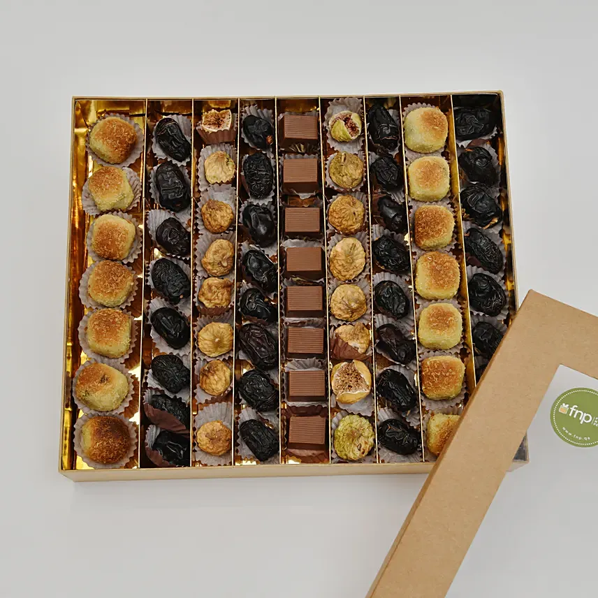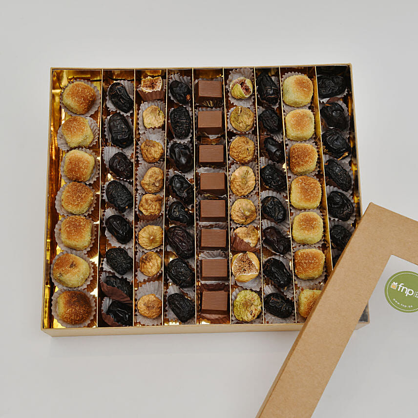 • Box Contains: Ajwa Dates, Belgium Chocolates, Figs, Dates Ball, Brown Box