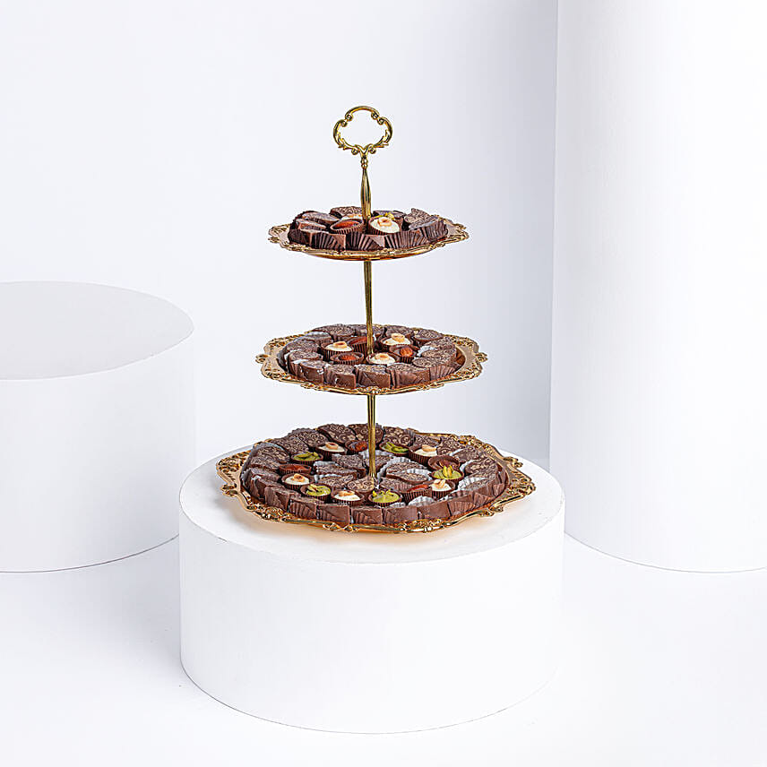 Assorted Chocolates in Golden 3 Layer Plate