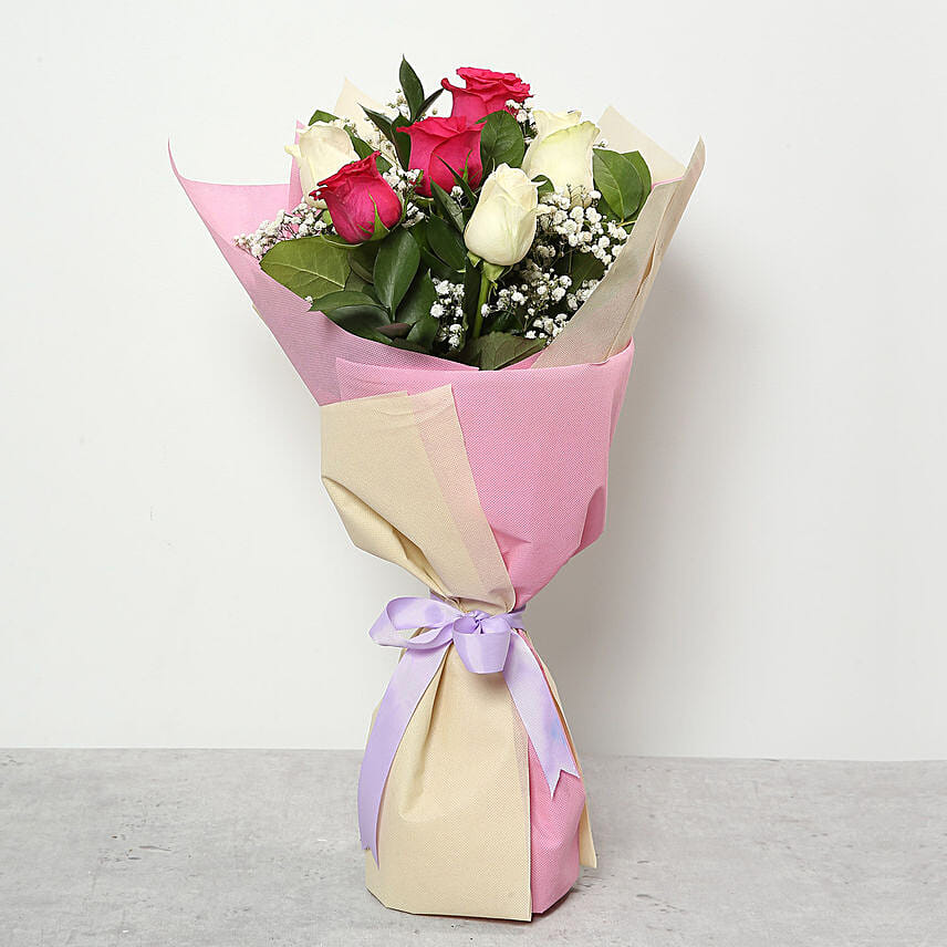 Attractive Pink and White Roses Bouquet