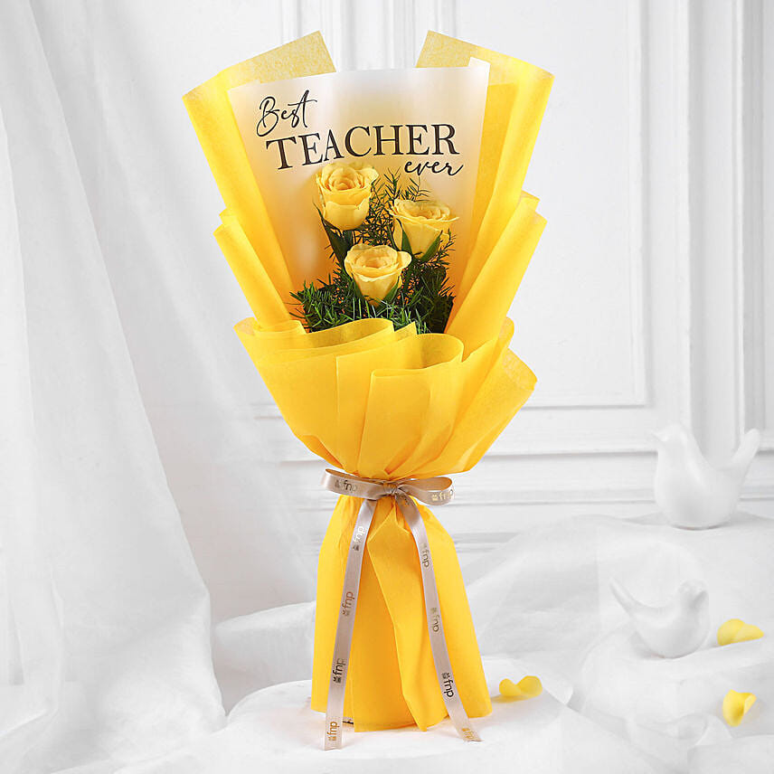 Best Teacher Ever Yellow Rose Trio Bouquet