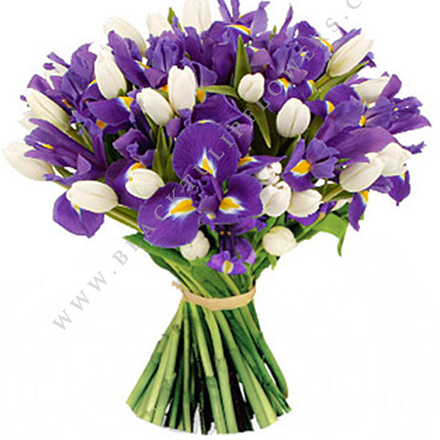 Blue Iris & White Tulips Bunch- Deluxe