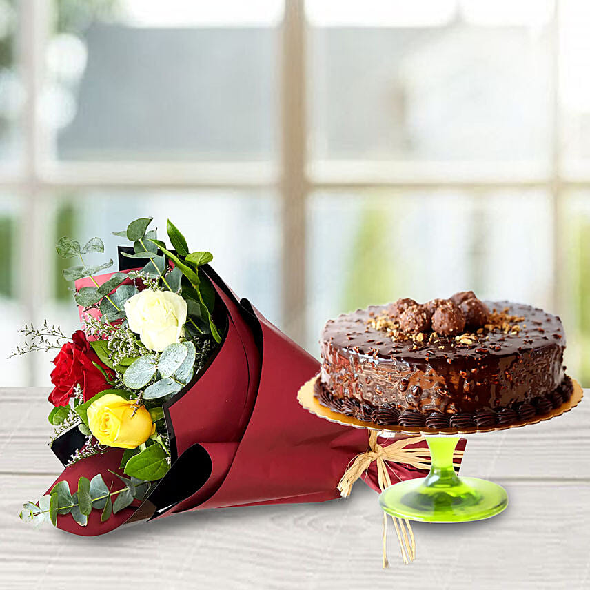 Chocolate Rocher 1.5 Kg Cake & Mix Roses