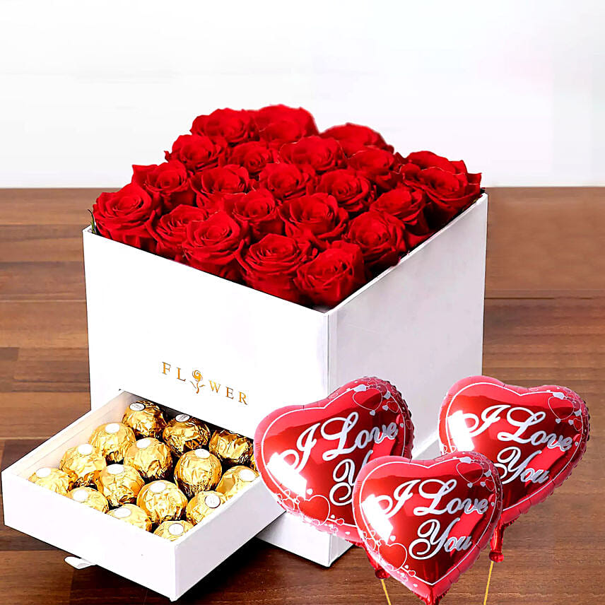 Classic Red Roses Arrangement With I love you Balloons