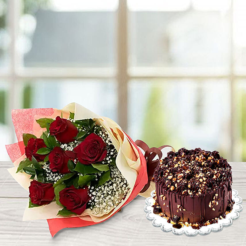 Crunchy Chocolate Hazelnut 1 Kg Cake & Red Roses