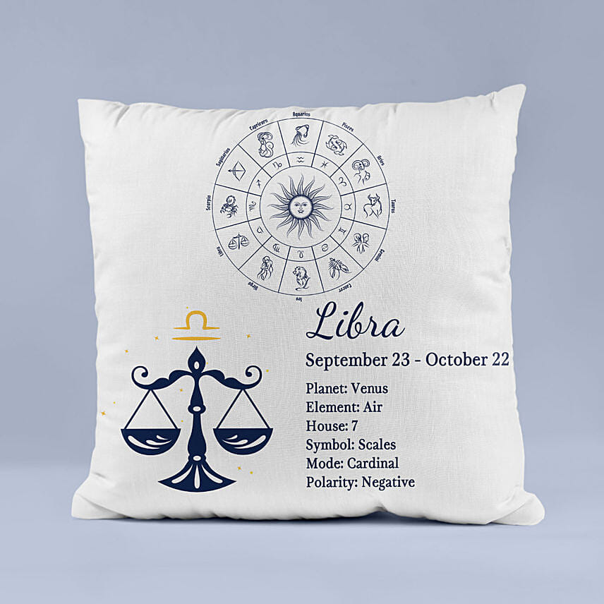 • One Zodiac Printed Libra White Cushion with Cover.