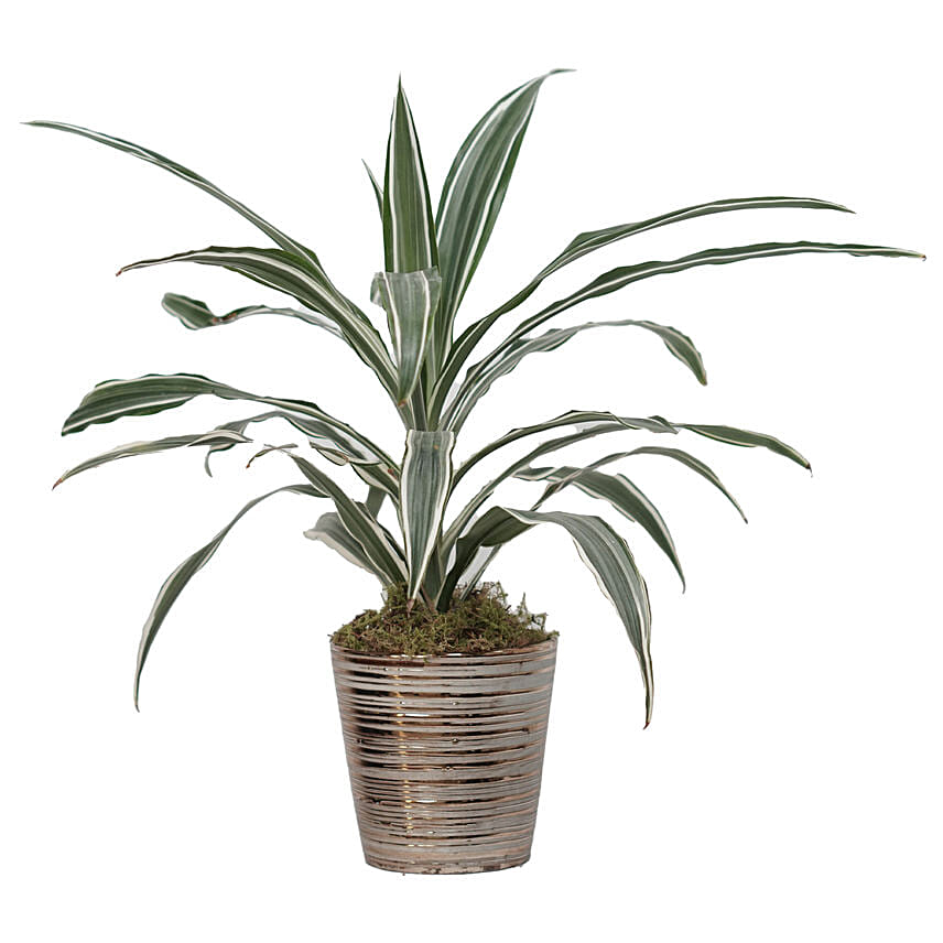 Dracaena White Stripes Plant Bronze Pot