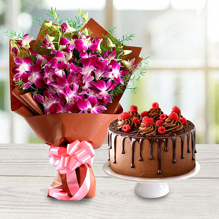 Dripping Chocolate 1.5 Kg Cake With Orchids