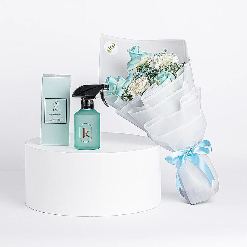 Complementing this floral elegance is the Kenooz Aquamarine Air Freshener, a 200ml bottle designed to invigorate your space with its refreshing scent. The fragrance unfolds with: