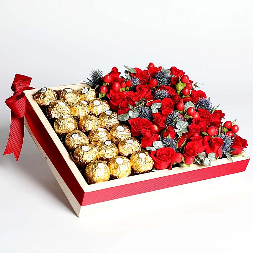 Exotic Roses And Chocolates Arrangement