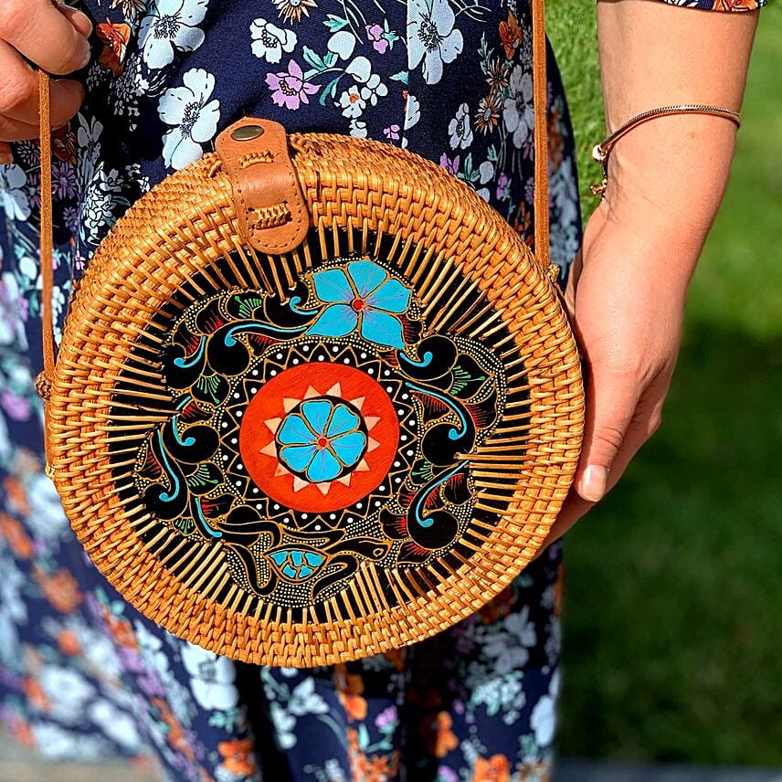 • This bag is handmade and hand painted, one at a time, using all-natural materials: rattan, bamboo and leather.