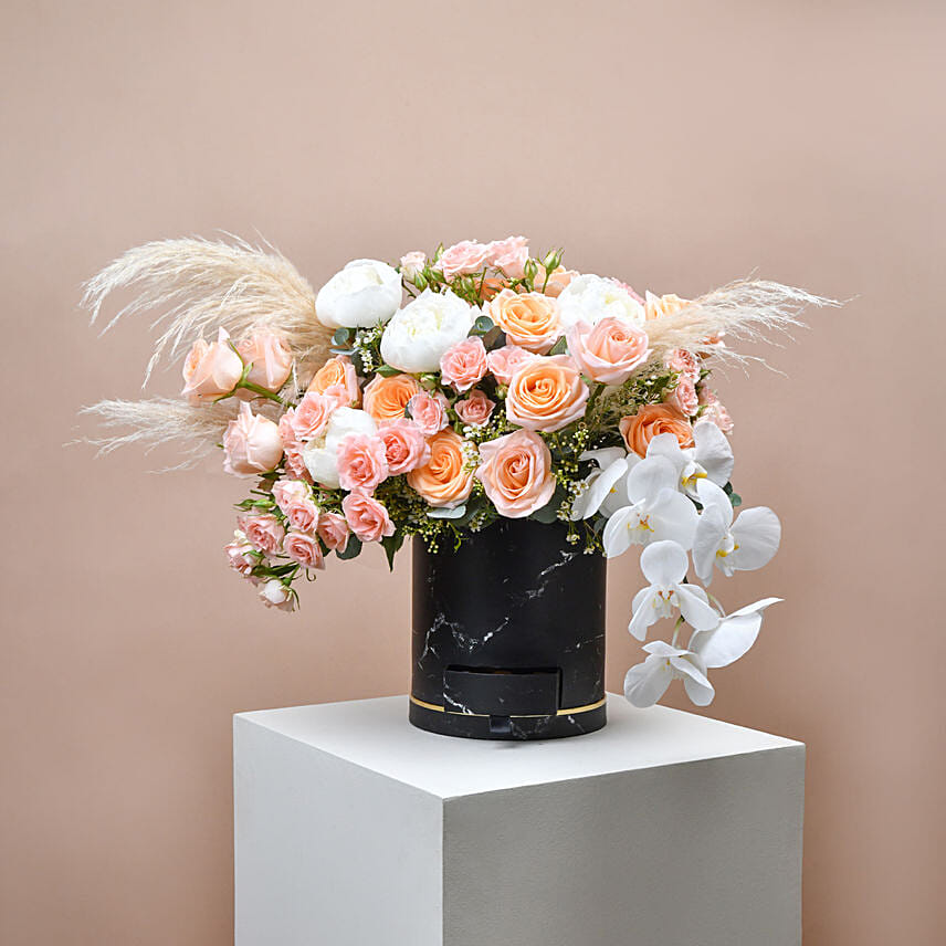 • Beautifully Arranged in a Black Round Box