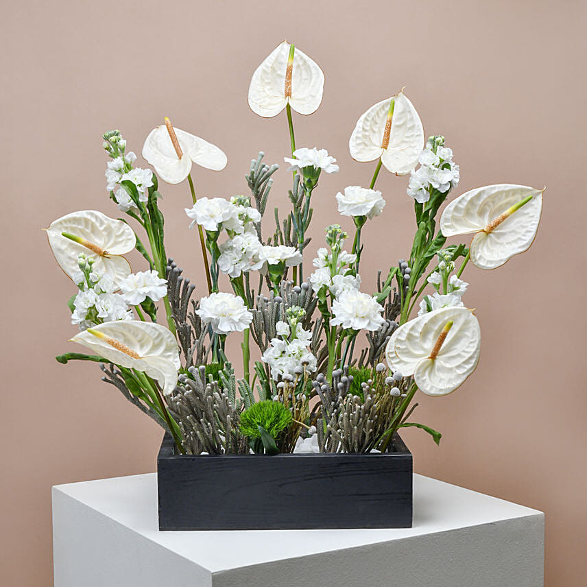 • 7 Stem Each of White Anthurium, Matthiola & Carnation
