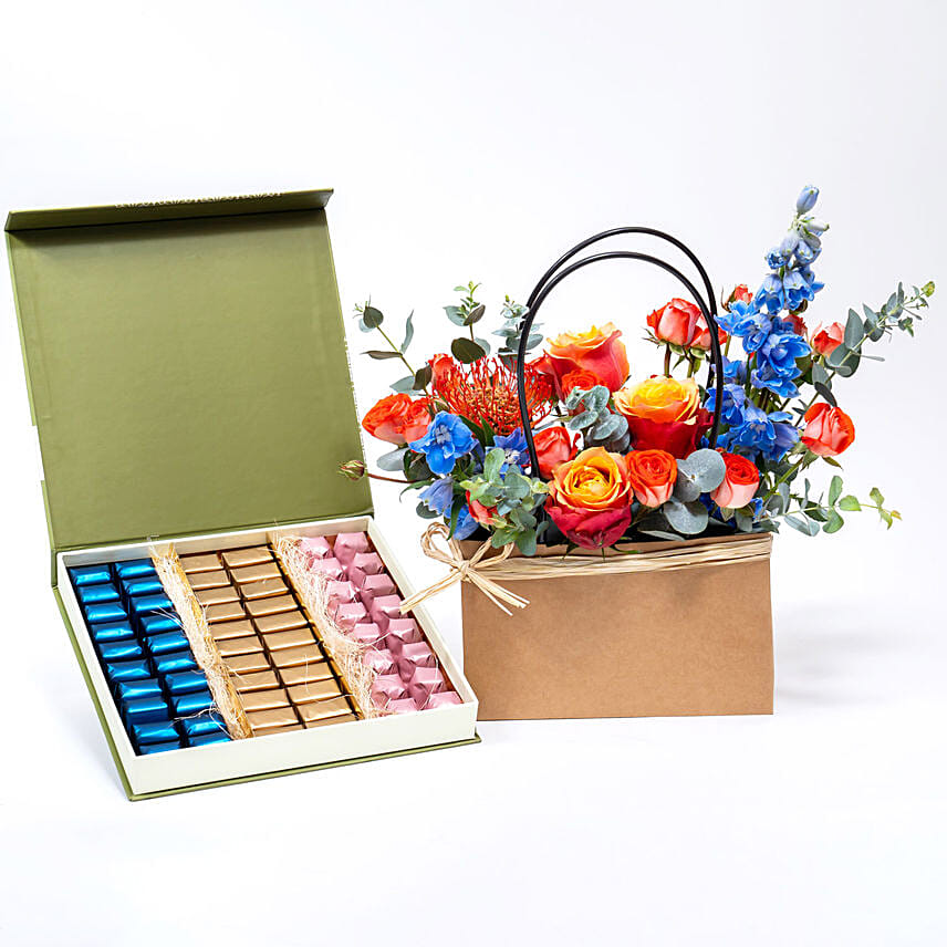 Flowers Arrangement with Chocolate Box