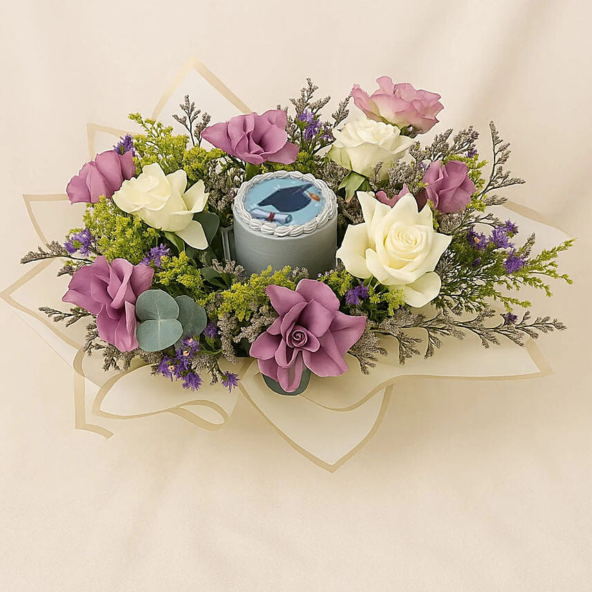 Graduation Gift Combo | Flower Bouquet and Mini Cake