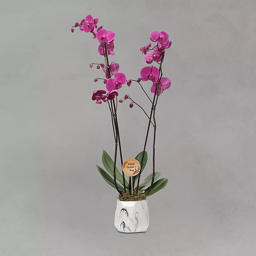 Happy Teachers Day Purple Phalaenopsis Plant Grey Pot