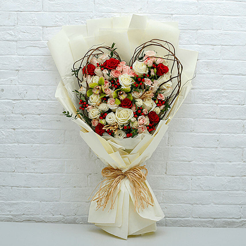 Expressing your emotions through flowers is one of the most thoughtful ways. Here is a heart-shaped bouquet made of handpicked fresh flowers, which says 'I love you.' It is perfect for occasions like birthdays, anniversaries, or just to tell someone how special they are!