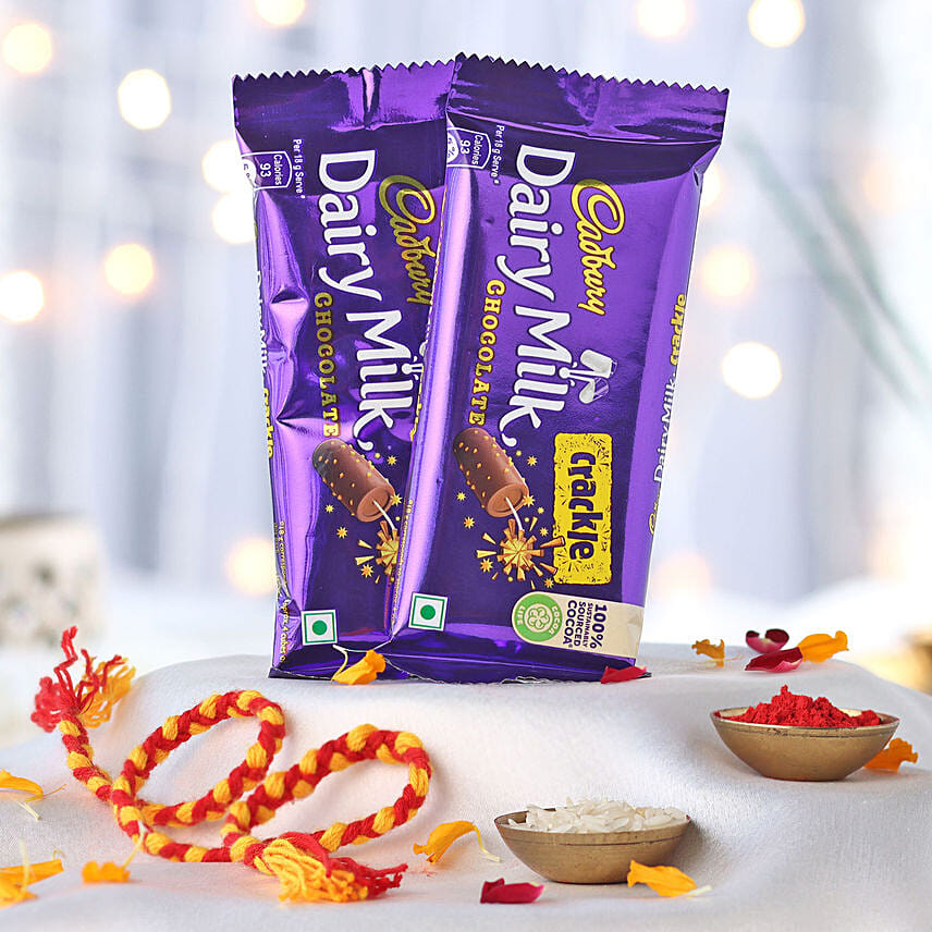 • 2 Pcs of cadbury dairy milk crackle chocolate bar: 36 gms each