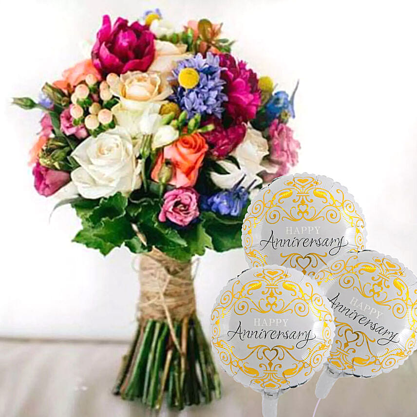 Lethal Combination Bouquet With Anniversary Balloons