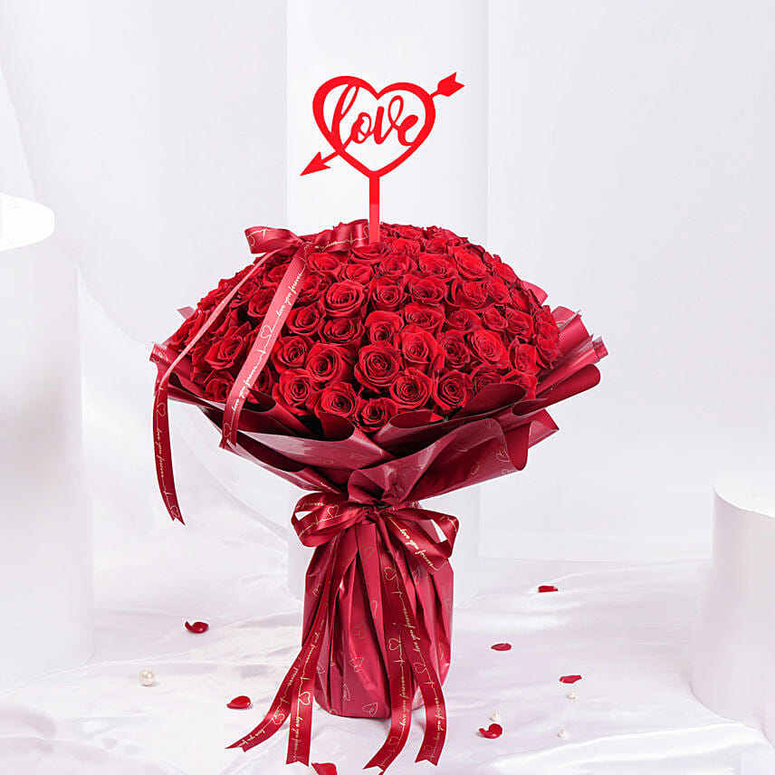 Love Medley Valentines Flower Grand Bouquet | Red Love Topper