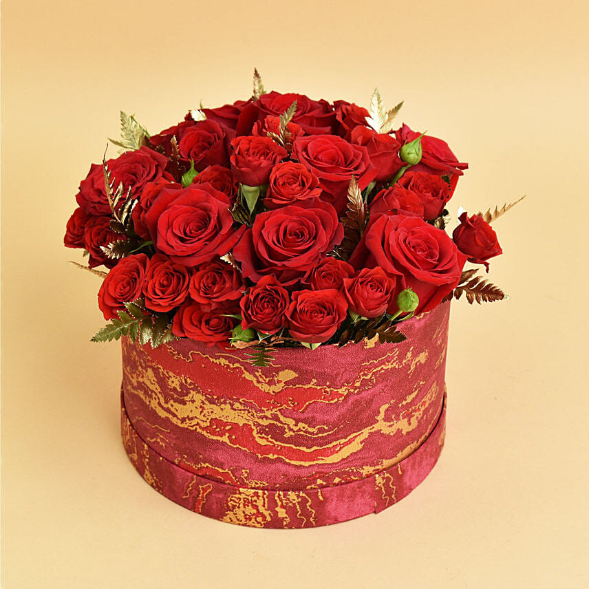 Keeping in mind the colour of love - Red, here is an arrangement of luxury flowers to shower your special one with all the affection. The classic way of declaring your love will never go out of style, so gift your beloved this lovely box of flowers and watch them smile ear to ear.